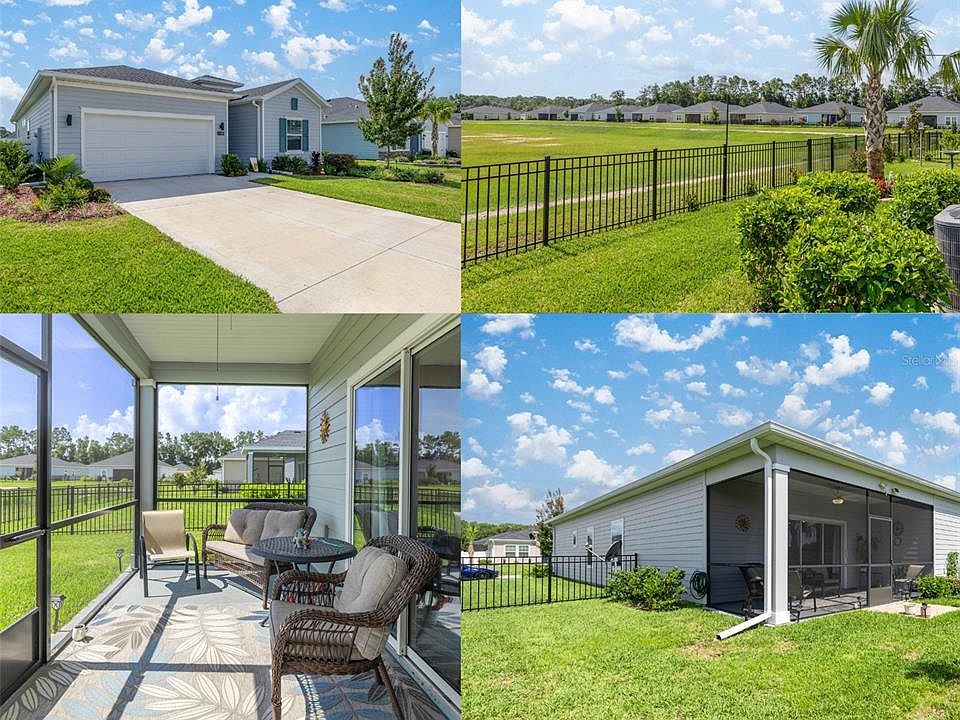 Experience Community living in this quiet 55 & older community of Liberty Village with NO BACK NEIGHBORS! Ask about a FHA a 4.99 PERCENT INTEREST RATE ,30 year fixed rate OR Lender Paid Closing Costs. This 2023, 2039 SQ FT Trevi model home has 3 bedrooms/3 bath Plus an office! One bedroom is an ensuite! (see floor plan) Triple sliders lead to your Screened lanai overlooking 9 ACRES where new walking trails are being constructed .Tall 9’4” ceilings throughout. Large gourmet kitchen with quartz countertops, walk-in pantry & island that overlook your living room/dining room. The master suite has 2 walki-n closets and a large walk-in shower. Ceramic tile is found throughout & carpet in the bedrooms. New gutters have been installed. Bring the pets w/ your SLEEK black aluminum fenced yard, full landscaping & bird houses! HOA covers high speed internet, TV, Pool, Pickleball, Bocci Ball & Shuffleboard courts. Golf Cart friendly! Sellers are being called back up North!Call agent for further details.