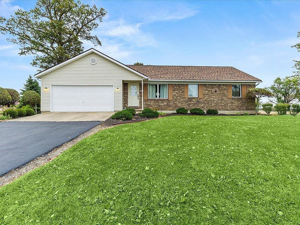 Energy-efficient ranch home situated on 2 scenic acres in the rolling hills of Logan County, with easy access to the highway leading to Honda, suppliers, and Columbus. Built in 1997 and recently updated, this meticulously maintained property is completely move-in ready. The home features 3 bedrooms, 2 full bathrooms, a full basement with poured concrete walls, and a semi-finished recreation area that includes two additional rooms ideal for an office, craft, or sewing space.