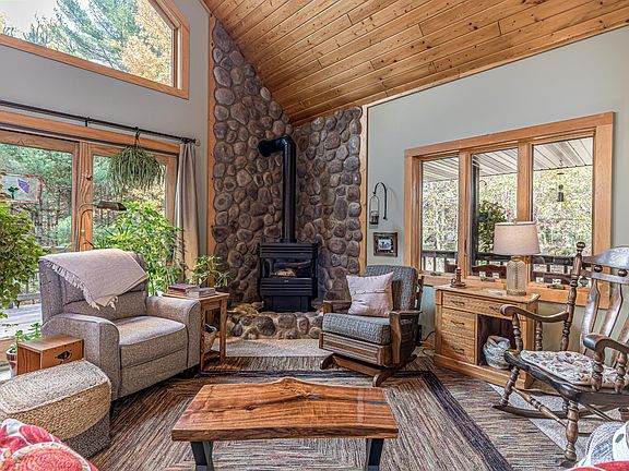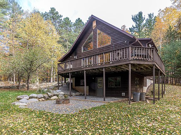 Subdivision Serenity! Timber Ridge Subdivision chalet on almost two acres provides a park-like setting, privacy, and room to stretch out. The cedar-sided charmer of a home spreads living across three levels with a stunning great room on the main level, primary suite on the elevated level, and a large family room with walk-out downstairs. ~2,200 finished square feet and a three bed/three bath layout make this the perfect home for a family with needs for ample space and looking for comfortable and cozy living. The spacious deck off the great room looks over the stunning Northwoods trees that provide a great privacy buffer. Timber Ridge provides miles of paved, quiet roads, a club house space with pool and tennis courts for its members, and an excellent golf course... all at an HOA fee of $340/yr. Natural gas, high speed internet, forced/central air, and a gas free-standing stove all serve the property. Priced to sell, this is one to see!