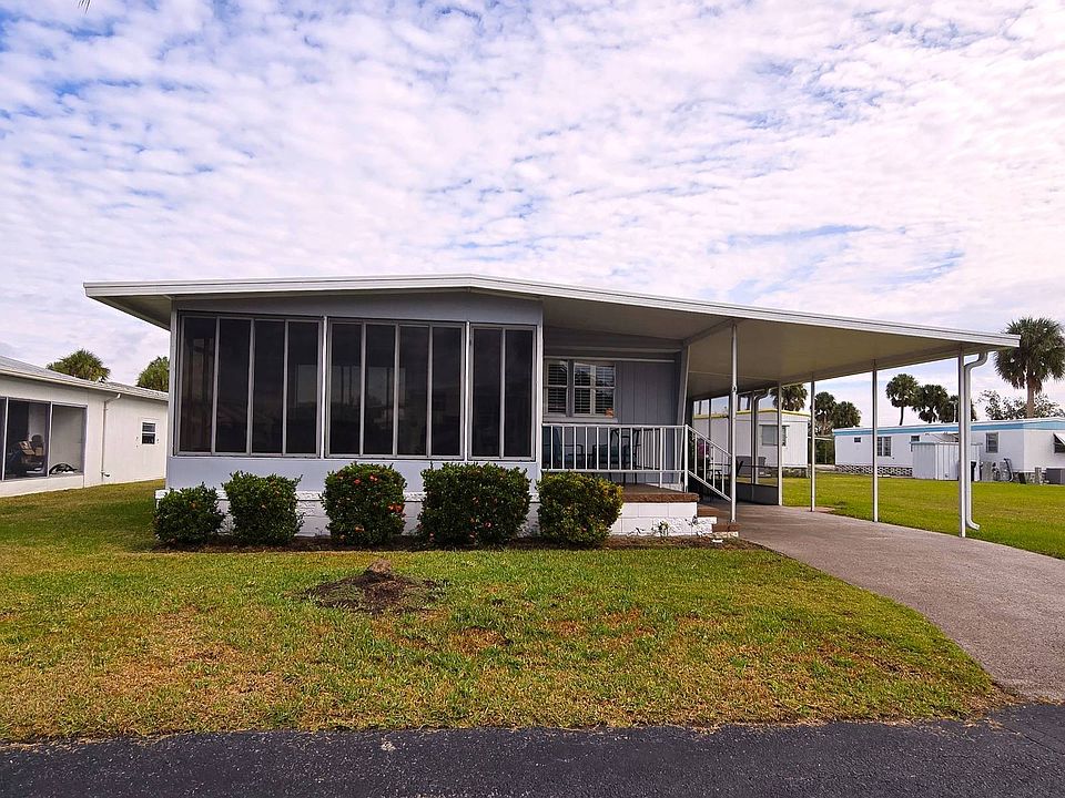 Remodeled 2BR/2BA Turnkey Home - Fully Furnished & Move-In Ready! Welcome to this completely updated and fully furnished 2-bedroom, 2-bath home that captures the essence of relaxed Florida living. This charming and thoughtfully decorated turnkey property is ready for you to move in and start enjoying the good life. This home features new vinyl windows with stylish planation shutters, modern light fixtures and laminate flooring throughout. The modern custom kitchen features new Samsung fingerprint resistant appliances, generous cabinet space, beautiful counters and dual stainless sink. Just off the kitchen, is a dedicated dining area that flows seamlessly into a spacious and inviting living room, ideal for both entertaining and everyday comfort. Step through the sliding glass doors to a fully enclosed lanai-your own peaceful spot for morning coffee or unwinding after a sun-soaked day. The primary bedroom offers a quiet retreat with an en-suite bath, large closet, vanity and separate walk-in shower stall. The versatile guest bedroom, currently furnished with twin beds, is located near the second full bathroom, which features a tub/shower combination. Step outside to a new carport, with a convenient shed for storage and a separate laundry area with a brand-new washer. The friendly, active community of Palm Bay makes it easy to feel right at home. Whether you're seeking a seasonal getaway or a full-time residence, this gem offers comfort, style, and an unbeatable location. Palm Bay Mobile Home and RV Park is ideally situated near Ellenton Premium Outlets, great restaurants, sporting venues, and the vibrant cities of Tampa and St. Petersburg. You're also just a short drive to Anna Maria Island and the world-renowned sands of Siesta Key! Lot rent is $851/month and includes trash, recycling, and access to amenities such as the community pool, clubhouse, library, billiards room, and full kitchen for events and activities. Don't miss your chance to own a slice of coastal paradise-schedule your showing today! While deemed reliable, all listing information and property specifics should be independently verified by potential buyers or interested parties. Buyers are encouraged to perform their own due diligence and obtain verification through personal inspection or qualified professionals. Measurements are approximate, and lot rent is subject to change.