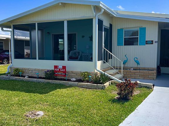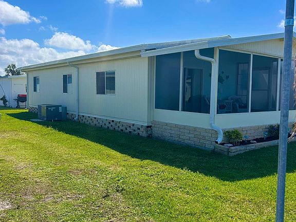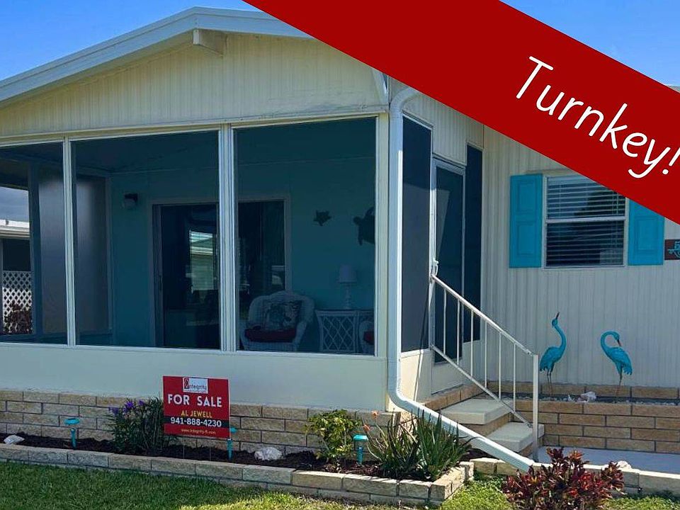 Turnkey, Fully Furnished 2-Bedroom, 2-Bathroom Home with Exceptional Upgrades! Move right into this beautifully maintained and fully furnished 2-bedroom, 2-bathroom home, offering spacious living and modern updates throughout. The extra-large master bedroom boasts two walk-in closets, providing ample storage space, along with the guest room also providing a third walk-in closet.The open-concept kitchen features a convenient snack bar, perfect for casual dining and entertaining. Recently renovated, this home includes a new exterior paint job (2025), a new gutter system (2025), and a new HVAC system with updated ductwork (2022) for year-round comfort. The large attached 12x13 storage shed offers additional storage, a washer and dryer, and electrical updates completed in 2020. This 1056 square foot home is nestled in Palm Bay RV And Mobile Home Park, with lot rent at $851 and covers trash, recycling and amenities which include a pool, clubhouse, with a library and billiards, as well as, a full kitchen for community activities. Call today for your showing. All listing information is deemed reliable but not guaranteed and should be independently verified through personal inspection by appropriate professionals. Integrity Mobile Home Sales cannot guarantee or warrant the accuracy of this information, measurements or condition of any property. Measurements are approximate. Lot rent is subject to change.