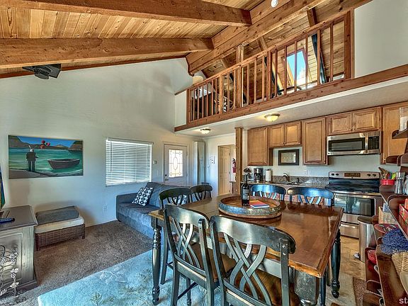 Experience Nevada living at its finest with valley and mountain views. This Tahoe home features two bedrooms, two bathrooms plus large loft. On the main floor you find the living area and kitchen featuring vaulted ceilings and stainless steel appliances. Relax on the adjacent upper deck while enjoying the stunning views of the valley and mountains. One bedroom and bathroom are also located on the main floor. The lower level features the master bedroom and bathroom with the laundry room conveniently located off the walk-in closet. Enjoy the crisp mountain air on the deck located just outside of the master suite. This home offers the elegance, class and comfort for which you have been looking. Centrally located for easy access to both Lake Tahoe and Heavenly Ski Resort, this getaway is perfect for both adventure seekers and those who just want to relax.