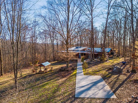 SOUTHEAST TN LIVING ON OVER 5 ACRES - This property is highlighted by the seclusion you crave on over 5 wooded acres of property. ADA wheelchair accessibility is offered at all exterior entrances as well as two water heaters. Inside, the HUGE living space boasts a stunning wood burning stove with stone/wood wall accent. Sky lights, vaulted ceiling and oversized windows welcome in plenty of natural lighting. ADA accessibility continues with a motorized seat to lead you down to the kitchen that's perfect for entertaining and gathering. An abundance of cabinet/counterspace, island workspace with kitchen bar seating and combined dining area makes mealtime a breeze. The primary bedroom features an en suite with sliding barn doors and jetted tub. An additional bedroom with its own bathroom offers a a wheelchair accessible tile shower with built-in seat. Enjoy relaxing evenings on the wrap around porch overlooking the beautiful property. Two storage buildings on the property give you endless amounts of storage. Additional septic tank and utility hookup is available at the entrance of the property. All of this and more in beautiful southeast Tennessee, you don't want to miss out on this one!