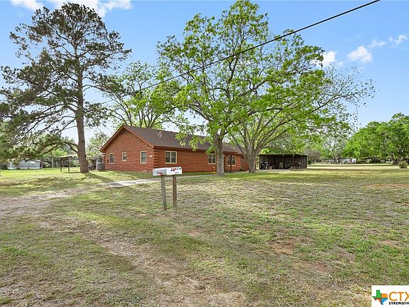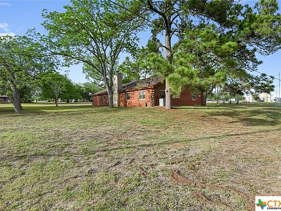 Custom-built "Wilderness" Log Home sits on just over an acre with pecan, pine, and hardwood trees dotting the property! This 2000sqft spacious floorplan has room to create a 3rd bedroom or enjoy a generous living area with its wood-burning fireplace and large wet bar. The master bedroom features one spacious walk-in closet, as well as an additional closet along with an ensuite. This home's new owner, will not lack storage either with many closets and expansive cabinets that feature pull-out drawers in the granite countered kitchen all of their items will be safely and securely stored out of sight. Though this property feels like it is in the city and does have city utilities it is in fact just outside of the city limits of Yorktown. Once there was 3 phase power to the property and could be again as the metal building (with water) was home to one of the area's grain processors many years ago and the equipment is still there, Call today and realize your Log Cabin Dreams in South Texas!