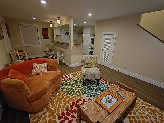 Available November 7! Fully furnished, recently remodeled downtown Duffy duplex on quiet street between busy Henry St and Park Ave. Some furniture can be removed if not needed. Upstairs has two bedrooms with original hardwood, one larger than the other and ceiling fans in both. Bathroom upstairs with new tile around a cast-iron tub, and large vanity top with multiple storage options. Kitchen is fully equipped. New queen bed in primary bedroom, new twin bed in second. Features two HVAC systems, washer, dryer, refrigerator, oven, microwave, dishwasher, record player, SEGA Genesis, two smart TVs, data outlets pre-wired throughout, off-street parking to avoid parking on street issues, granite countertops, screened and tinted windows, covered front and back porches, fenced backyard, and tile floors downstairs. Lots of outdoor space for downtown living. Six blocks to Forsyth Park, Kroger even closer. Bus stop on next street. No aggressive pets, no smoking inside, no past evictions, must pass background/credit check, and minimum requirements. Landlord performs yard maintenance. $200 cleaning fee. $100 refundable pet fee per pet. Up to two bikes and locks available for $50/each per month upon request. Utilities included, (water, sewer, trash, electric, internet). One month lease minimum, up to 18 months. $800 security deposit.