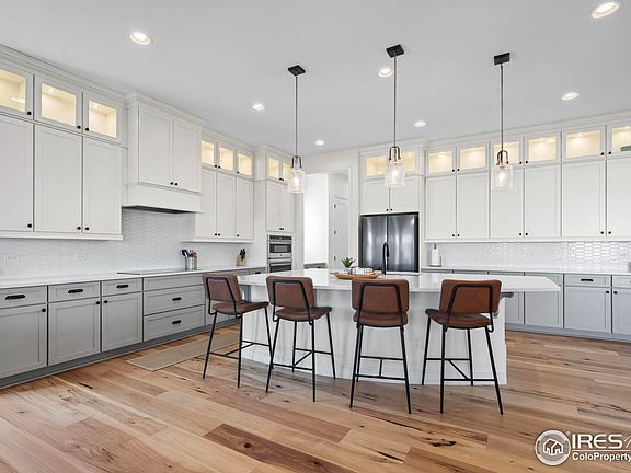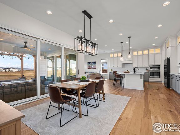 Nestled in the heart of Erie, Colorado, this stunning 5-bedroom, 5-bathroom home offers the perfect combination of modern luxury and breathtaking natural beauty. Set on a private lot that backs to permanent open space, this home offers sweeping mountain views and a tranquil, serene setting. The open floor plan flows effortlessly, offering expansive living spaces bathed in natural light, thanks to grand sliding doors that open fully, seamlessly connecting the indoor and outdoor areas. The oversized kitchen island is a standout feature, providing ample space for cooking and entertaining. The kitchen is equipped with a double oven, an induction stove (with a gas connection option), a built-in coffee bar, and a large pantry for all your storage needs. On the main floor, you'll find a large bedroom with its own attached private bathroom, perfect for guests or multi-generational living. There is also a luxurious office space, enhanced by elegant crown moldings that exude sophistication and craftsmanship. This space offers a refined atmosphere, making it the perfect place to focus, create, or work from home in style. Upstairs, the expansive primary bedroom suite is a true retreat, featuring stunning mountain views and a luxury bathroom with an oversized closet that creates a spa-like experience. There are also three additional spacious bedrooms, each offering ample closet space. These rooms share a full bathroom, as well as a convenient Jack and Jill bathroom for added privacy. The versatile loft area provides the perfect space for a home office, reading nook, or play area. The home also includes a 3-car garage, providing plenty of storage space, while the unfinished basement offers endless possibilities for additional living space or customization. The community center, pool, and clubhouse are just a short walk away! This home offers an exceptional lifestyle-schedule your private tour today and experience all it has to offer!
