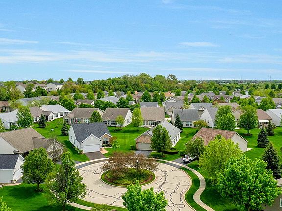 This highly sought after Belmont model ranch home is located on a cul-de-sac in the adult, resort style, gated community of Edgewater by Del Webb. Brick elevation and full front porch provide immediate curb appeal. Step inside and you will notice the generously sized office, living room and dining room. The home has a freshly painted interior, new carpeting throughout and upgraded 3 panel white doors. The kitchen has been completely remodeled and features new counters and new white cabinets with soft close drawers/doors plus several slide out cabinet shelves. The large master suite features a walk-in closet, private master bathroom, dual sinks, and walk-in shower. The second bedroom and second full bathroom are located on the opposite side of the home providing plenty of privacy for owners and guests alike. Dedicated laundry room leads to the 2 car garage. Close to shopping, restaurants and entertainment. Edgewater provides 24/7 guard gated security, snow removal, lawn care and seal coating of the driveway. The beautiful Creekside Lodge is the heart of the community. Enjoy indoor and outdoor pools, hot tub, billiard room, fitness center, tennis/pickle ball courts and bocce ball.