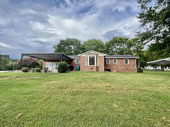 Brick ranch style home. All on one level. Lovely lot with mature trees and landscaping. Covered front porch. Two car carport. Detached shop with gas heat, window unit and sink. Additional storage building. 3 bdrms and 2 baths. Bonus room. Separate living area and den. Concrete driveway