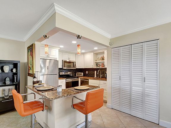 Discover this beautifully updated ground-floor unit, offering 1 bed and 1.5 baths. The unit boasts a spacious screened-in patio perfect for relaxing, complemented by an open kitchen design with elegant granite countertops and high-end stainless steel fixtures. Located on a small, quiet dead end street. Enjoy the sophistication of tiled flooring throughout and the efficiency of modern LED lighting. Located just steps from the Monaco clubhouse and pool, you'll have access to a wide array of state-of-the-art amenities. Community highlights include golf, tennis, and pickleball courts, both indoor and outdoor swimming pools, a theater, a fitness center & cafeteria.