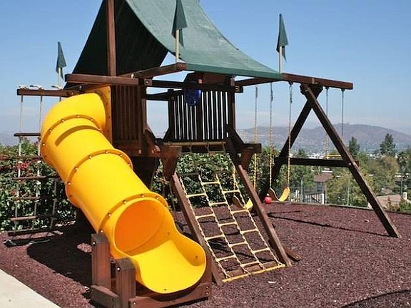 Play structureNew lawnHillside viewBrand new wood flooringVaulted ceilingStainless steel appliancesOutdoor lights