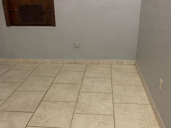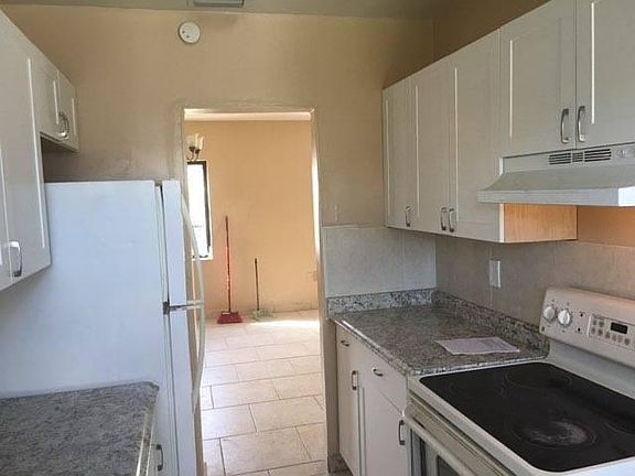 2/1 w small garage (for storage) and large back patio and large fenced yard. Central Air, all tile floors, front and back security gates. Washer & Dryer. This is a duplex. Walls are painted gray throughout (old photos shown here, sorry)