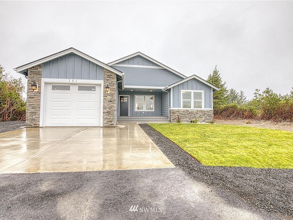 Gorgeous new home by one of Ocean Shores' most quality builders! This beautiful two bed, 1.75 bath home is in a fabulous location just South of one of the walk-on beach approaches! The home has open concept living space w/vaulted ceilings, stone propane fireplace, & ceiling fan. The kitchen features quality, soft close cabinetry, stainless-steel appliances, & an island eating bar. Designated laundry area is off the kitchen, as well as a dining room opening onto the private, covered back deck! Primary suite boasts a beautifully finished walk-in closet & an attached bath w/step-in shower. Primary also opens to private back deck! Also enjoy the beautiful front deck, & convenient one car garage. Enjoy the 3D virtual tour & feel at home!