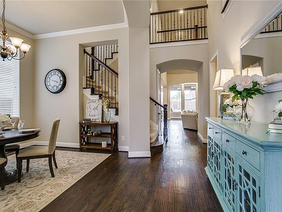 Dynamic Highland-built home has inviting front porch, multiple living areas, game room, media and study. Five spacious bedrooms, including guest suite downstairs and private master retreat with walk-in closet + elegant bath. The soaring ceilings, stone fireplace, extensive hardwood floors and keeping room add to its appeal. The bright white kitchen include farm sink, dbl ovens, gas cooktop and furniture style cabinetry. Additional features include generous utility room with sink and mudroom, surround sound wiring + extended covered patio and a pool-sized backyard. Neighborhood offers pool, playgrounds and catch & release ponds. Conveniently located near Frontier Park & DNT. Attends highly rated Prosper ISD.