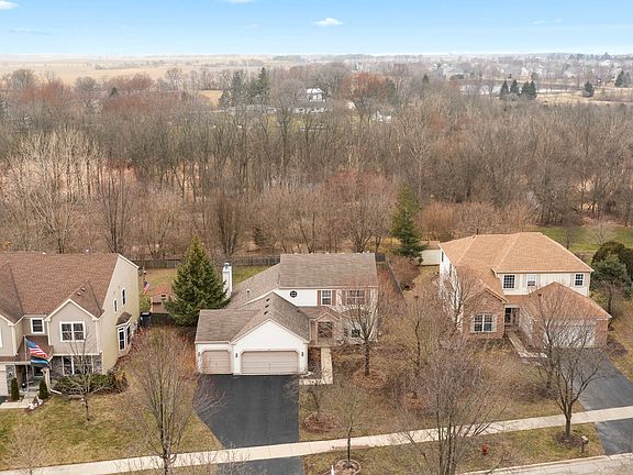 SPRING INTO A NEW HOME! Looking for modern living in an open concept design in Kaneland Schools? This is the right choice. This 3 bedroom, 2-1/2 bath 3 car garage home offers options galore. From amazing sunsets from your fenced yard that overlooks county forest preserve to relaxing by a cozy fire inside, this 1900+ sq. ft. home doesn't disappoint. Inside the airy layout provides a contemporary atmosphere that's perfect for entertaining. The large eat-in kitchen features plenty of cooking space plus maple cabinets, stainless appliances, a planning desk and a pantry. The expanded family room boasts a soaring vaulted ceiling, a wood burning/gas start fireplace, multiple seating arrangement options, office/flex area and tons of natural light. Other main level highlights include a generous dining room, a bayed living room with up/down custom blinds, laundry (washer & dryer included) plus hardwood floors that grace much of the first floor. The hall above provides a panoramic view below to the family room and to the large backyard. The vaulted owners suite includes a custom designed organized walk-in closet plus a tiled luxury bath with double bowl vanity, soaker tub and separate shower. Two secondary bedrooms share an additional full bath. Need more living space? The full basement with bath rough-in, and active radon mitigation system is ready for your creative finishing ideas. The 3-car garage provides plenty of storage including a pull down attic area. The large fenced yard features an extended brick patio plus several garden areas for outdoor enthusiasts. NEWER furnace with Aprilaire humidifier, AC & water heater provides additional savings. Conveniently located to natural open space with limited street thru access, nearby to multiple ponds and plus easy access for commuting. Ready to make the move? Don't wait on this one!