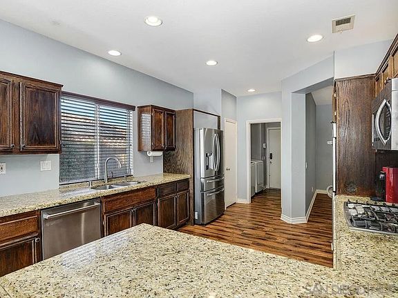 Welcome to this Lovely 2,866 sq. ft. spacious home in the highly desirable Santa Fe Hills neighborhood offers hillside views and access to nearby trails, all with NO HOA FEES. The thoughtfully designed layout includes a formal dining room, a spacious living room, and an open-concept kitchen that flows into a large family room and opens towards the backyard. Energy-efficient features, including solar panels, help reduce utility costs while promoting sustainability. The main level floor offers a den/office with a full bathroom and can easily be converted to a 5th bedroom by adding a closet. Upstairs, the home features a large bonus room, three bedrooms, and a Spacious Primary Retreat with a large walk-in closet. Recent updates include flooring and custom painting throughout. The low-maintenance yard makes outdoor living effortless, and the property is within walking distance of a community park, play area and walking trails. Within the highly regarded San Marcos Unified School District, you'll appreciate the convenience of having top-rated elementary, middle, and high schools just minutes from your home. Additionally, both Cal State University and Palomar College are located within a 3-mile drive. This home is perfect for anyone seeking comfort, convenience, and an active lifestyle.