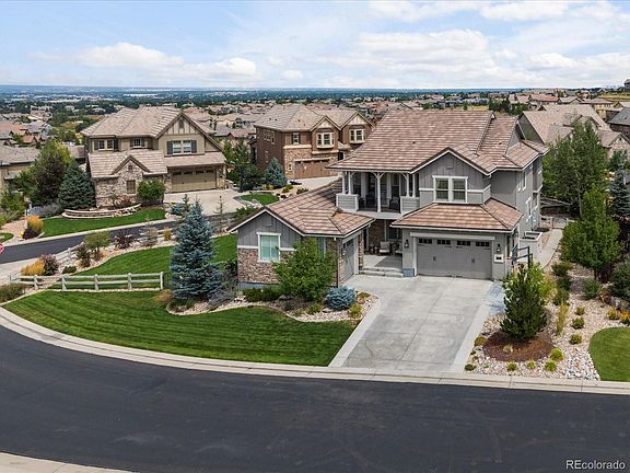 Welcome to this stunning 6-bedroom, 6-bathroom home in the highly sought-after Backcountry neighborhood of Highlands Ranch, where breathtaking sunsets and mountain views can be enjoyed from the expansive wraparound back patio. The professionally landscaped yard is perfect for entertaining, offering space to play, lounge by the gas fire pit, or dine under the Colorado sky. Inside, the main floor showcases a massive chef’s kitchen with butler’s space, two pantries, a huge island with new quartz countertops and farmhouse sink, a spacious living room wrapped in windows with remote-controlled treatments and a cozy fireplace, a formal dining room, a private office, a bedroom with en-suite bath, plus a half bath and laundry room. Upstairs features four additional bedrooms and three full bathrooms, including a luxurious primary suite with fireplace and spa-like 5-piece en-suite. The finished basement boasts a large rec room with surround sound for movie nights, a guest bedroom with full bath, and over 1,190 sq ft of unfinished space ready for your vision. With three garage spaces, designer finishes, and resort-style community amenities, this Backcountry beauty is the perfect blend of luxury and comfort.