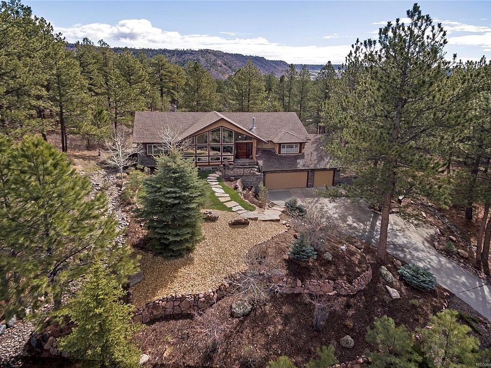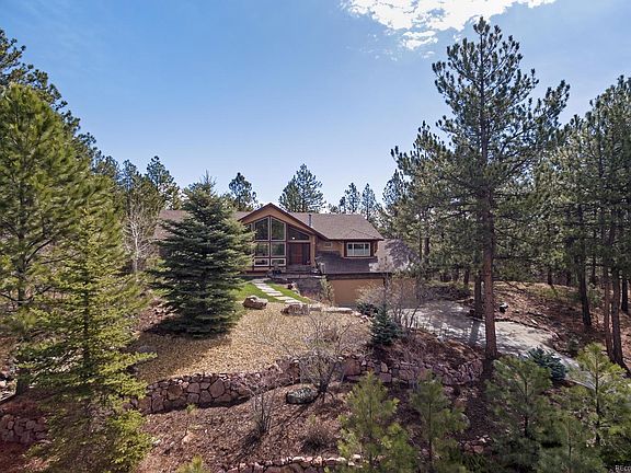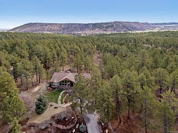 Stunning custom ranch walk-out on almost 1 acre backing to a greenbelt with views of Raspberry Butte! Open floor plan with approx. 3716 FSF with 4 bedrooms & 4 baths + main floor study/office. The gorgeous great room is appointed w/wet bar, wall of towering windows, vaulted ceiling, gas burning fireplace & a beautiful stone wall featuring art niches/media nook. Chef's kitchen w/stainless appliances, hardwood flooring, breakfast bar, granite counters, nice pantry & desk space. Master suite w/gas burning fireplace set in stone wall, walk-out to expansive deck that extends the full length of home, large walk-in closet & spa 5 piece master bath w/jetted tub & massive shower w/2 shower heads. Finished walk-out lower level w/family room, 3 beds/2 baths, & rec/entertainment room. Professional landscaping w/water feature, bridge & new front exterior landscaping with stone walkway. Short golf cart ride to The Golf Club at Bear Dance. 12 minutes to Castle Rock, only 25 minutes to DTC/CO Springs.