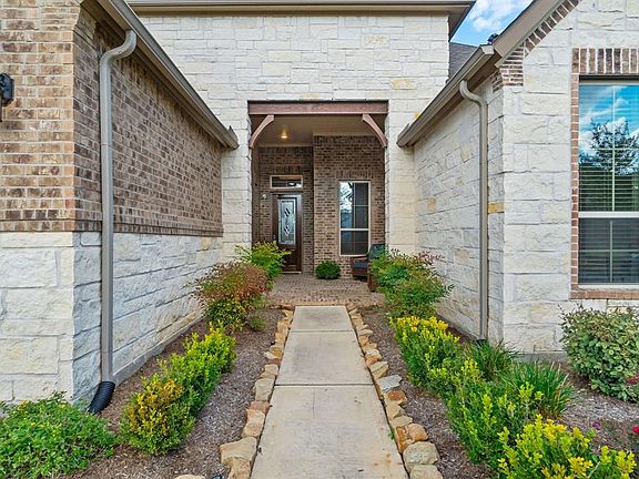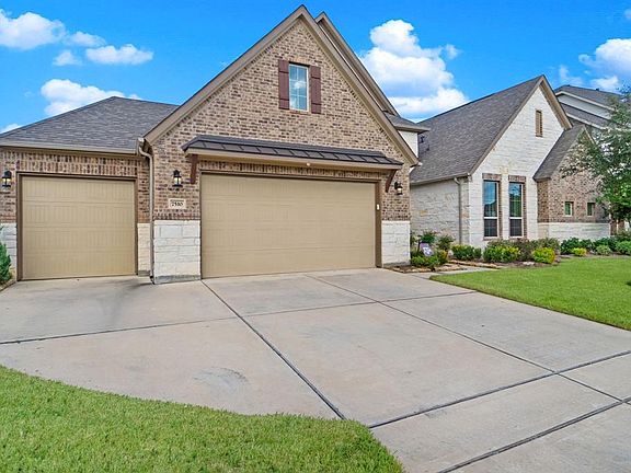 Beautiful 1 story Energy Star Rated home with an open floor plan and over $55,000 in upgrades located on large upgraded lot backing to the walking trails/ponds. Home is located within walking distance from the community pool, splash pad, and playground. Minimum 10â ceilings throughout, 3 car epoxy coated garage with a 3â extension and 8â tall insulated garage doors, air-conditioned man cave, under cabinet lighting in kitchen, pre-wired for security cameras, speakers and volume knobs in various rooms throughout home, pre-wired surround sound in living room, pre-wired for wall mounted TVs in various locations, LED light bulbs, high efficiency/upgraded variable speed AC unit, water softener, upgraded R38 insulation in ceiling and added rain gutters surrounding home. Home did NOT FLOOD during Harvey! Community amenities include pool, splash pad, playground, walking trails around ponds, dog park, and a putting green.