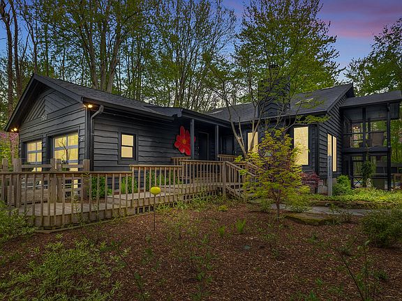Harbert - Stunning Contemporary Retreat in the Heart of Harbor Country.Tucked away on 1.37 wooded acres, just a short walk or a four-minute bike ride to Harbert Beach, this 4-bedroom, 3.5-bathroom contemporary home is a seamless blend of modern sophistication and relaxed comfort. Thoughtfully designed with an airy, eclectic aesthetic, it offers generous spaces perfect for both entertaining and unwinding. The expansive living and dining area impresses with soaring ceilings, wide-plank hardwood floors, a striking library wall, and a wood-burning FP, creating a warm and inviting atmosphere. A versatile family room—complete with built-in stainless cabinetry, a sink and ice maker—flows effortlessly to one of two screened porches, outdoor deck, and the private pool area. Step outside to your personal oasis, featuring a heated pool (with a newer liner, cover and heater), a hot tub, firepit, outdoor shower, lovely gardens and serene wooded surroundings. The eat-in kitchen with second of three screened porches is perfect for casual meals, while two of the four bedrooms are en suite, ensuring comfort and privacy. A spacious yoga/exercise room with a dedicated outdoor morning yoga/meditation deck (also a perfect spot for afternoon ping pong) adds to the home's tranquil appeal. There's even a wine room for the ultimate retreat experience. Outbuilding for storage. The property has a proven track record as a successful short-term rental, making it an excellent opportunity for those looking to offset costs. Just minutes from all Harbor Country attractions, this very cool contemporary escape is poised and ready for your summer 2025 enjoyment. Please note adjacent lot (.6 acres-11-07-0016-0015-05-0) to the East can be purchased for $150K additional.