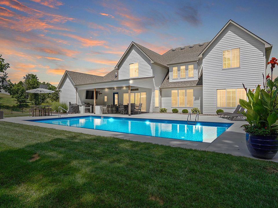 Welcome to your dream home! This nearly new, custom-built 1.5-story Anderson home in the Gates Subdivision, offers 5 bedrooms, 4.5 bathrooms, 4-car garage, and just under 4,000 sq. ft. of living space on a private 2.3-acre wooded lot at the end of a cul-de-sac. Designed for luxury and functionality, the home boasts a 20x40 heated saltwater inground pool alongside an outdoor kitchen/bar with flush mounted InfraTech outdoor heaters, island, sink, beverage fridge, grill, flattop grill, trash bin, and storage drawers, perfect for entertaining. Buyer to verify all info including but not limited to schools, taxes, sq. ft, room sizes, acreage, HOA fees, zoning, restrictions, etc. Inside, the main floor includes 10' ceilings, stone fireplace, a primary suite with oversized tiled shower, soaking tub, dual vanities, sconce lighting, and a large walk-in closet. The gourmet kitchen features a 48-inch Jenn-Air range with six burners and a griddle, a 48-inch Jenn-Air refrigerator, ceiling height cabinetry, apron sink, and a walk-in pantry with a standalone ice maker, sink, and reverse osmosis water system. Second floor includes four bedrooms (two of which have ensuite bathrooms), office, a large family room with a wet bar and beverage fridge, plus a large walk-in storage room. Additional highlights include a second set of laundry hookups on the upper level, a tankless water heater, a whole-house water softener and filtration system plus reverse osmosis, a 400 AMP electrical service (ideal for adding an EV charger or hot tub), an oversized side-entry driveway, and an upgraded landscaping package with beautiful maple and pine trees. This home is a perfect blend of modern convenience, thoughtful design, and natural beauty.