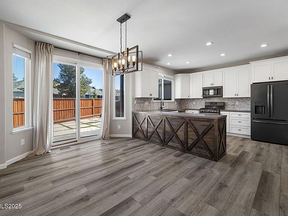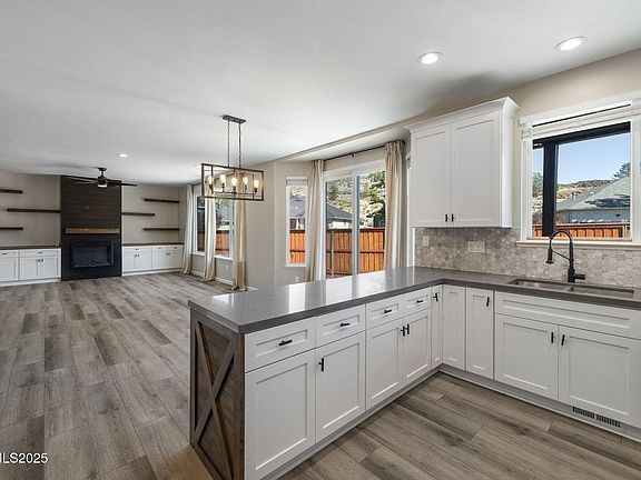 Seller is offering a credit for interest rate buy-down, closing costs, landscaping- if buyer is able to perform before 12/31/25. Modern comfort meets timeless design is this beautifully updated home on an oversized corner lot with NO HOA. The bright, airy floor plan connects the family and dining room, anchored by a cozy fireplace. The kitchen features newer appliances, quartz counters, new cabinets, and a walk-in pantry. The primary suite features vaulted ceilings, a new electric fireplace, and a fully remodeled spa-style bathroom with a free-standing tub, new cabinetry, quartz counters, and custom niches. The walk-in closet has a new organizer system designed for ultimate optimization. Throughout the home, you will find LVP flooring, black hardware, pine baseboards, LED lighting and fresh modern paint. The bonus room on the main floor makes for a perfect home office, gym, or 4th bedroom. Outside, enjoy fresh exterior paint, stained wood pillars, sound- reducing windows and a newly approved front and rear fencing- ready for pets, play and privacy. Located minutes from South Reno, downtown, and the Southwest connector, this home delivers a lifestyle of modern, low maintenance, and efficiency.