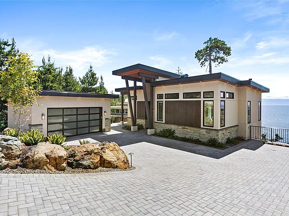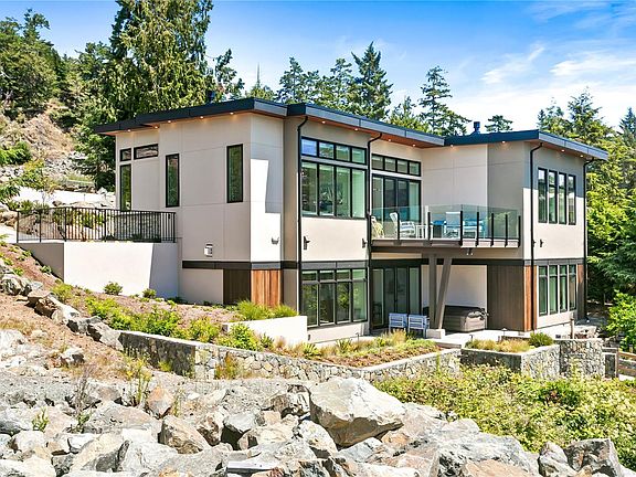 Experience unmatched coastal living in this west coast contemporary waterfront home along the stunning Juan de Fuca Strait. Completed in 2024, this 2,866 sq. ft. architectural residence features three spacious bedrooms, four bathrooms, and a versatile den perfect for a home office. Offered fully furnished (optional), it’s one of only seven custom oceanfront homes in Sooke’s first-of-its-kind luxury development. Interiors by Jenny Martin Design feature shiplap accents, panel-ready appliances, and refined millwork for ample storage. Enjoy an open-concept layout with ocean views, a designer kitchen, and fireplaces that add warmth and ambiance throughout. Dual laundry areas offer added convenience, while the advanced heating and cooling system provides individual climate zones. Whether as a full-time residence or a turn-key retreat, every detail is thoughtfully curated for coastal elegance and modern comfort.