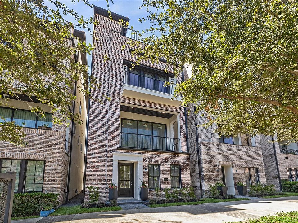 Beautiful four bedroom home situated on an interior lot overlooking the resort style pool and dog park. Elevator included! Wood floors throughout, quartz counters, island kitchen, high end finishes and stainless-steel appliances. 12' ceilings and 10' sliding stacking door on second floor living area overlooking the sparkling pool and dog park. Primary suite with a balcony! Luxurious marble bath with dual sinks, jetted tub, stand alone shower and ample closet space. Game room with roof top deck on fourth floor has beautiful views of the secluded, serene community of Ravenna. Gate attendant is on duty 24/7. Excellent close-in location near the Galleria and Memorial Park. Zoned to Spring Branch Middle, Memorial High School and walking distance from Awty International School. Estimated completion January 2026.