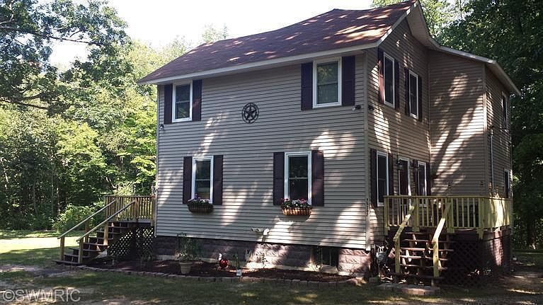 This property is priced to sell!!!! THE SELLER HAS JUST REDUCED THE PROPERTY BY $20,000!!! This 4 bedroom 2 bath home is just waiting for you to move in. This home was rebuilt from the basement up and is only 2 years old. It features all new plumbing, electrical, full wall closets in the bedrooms,9ft. ceilings high efficiency furnace , hot water heater and more. This home sits on almost 26 wooded acres with two streams running through it. This property is truly a hunters paradise. There is a large barn behind the house for any of your hobbies or storage needs. This property is priced to sell and is only a short drive to Lake Michigan make your appointment today! SELLER IS ALSO PROVIDING THE BUYER WITH A 1 YEAR HOME WARRANTY!!!!