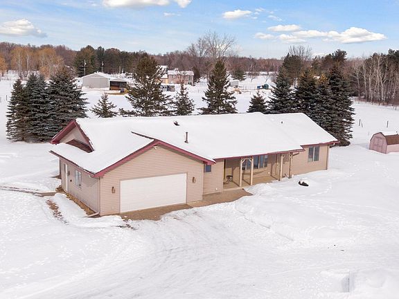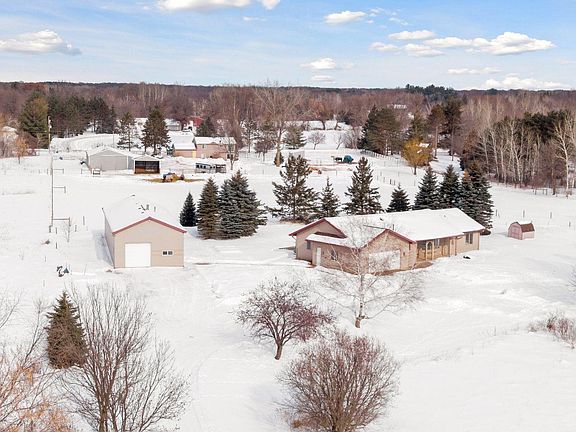 Zen - a feeling of peace that you will experience when you turn down this long, serene driveway! This almost 5 acre lot offers plenty of outdoor space for gardening, recreation + possibly even horses or small hobby farm! Walk inside to a meticulously maintained bright + light rambler w/ fresh paint! Enjoy the south facing living room, perfect for entertaining guests! The kitchen features trey vault ceilings, loads of cabinets, breakfast bar + plenty of windows! Off the dining area are french doors that lead to a sun filled family room, the perfect place to relax after a long day + watch wildlife out your windows! The primary suite features a large walk-in closet + full private bath. Attached garage is heated, + great for the cold winter nights! Spacious 24 x 75 pole building where you could run your small business from or store all of your toys! This home provides privacy, peace, + tranquility, while still being w/in reach of the nearby cities + all of their conveniences!