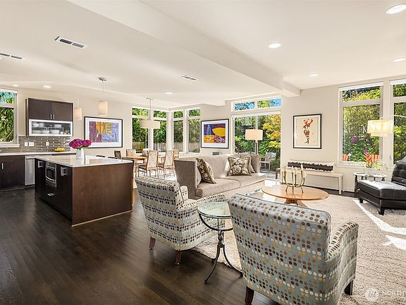 Exceptional modern home in coveted Phinney Ridge with striking design & effortless flow. Dramatic open spaces, ebony oak floors & walls of glass, invite light in. The gourmet kitchen is designed for easy living & entertaining w/ quartz counters, stainless appliances, walk-in pantry & an oversized island. Step outside to the lush west-facing garden with room to lounge and dine—perfect for summer evenings! Retreat upstairs to 3 spacious bedrooms, including a luxe primary suite + laundry. Modern comforts include A/C, a 2-car attached garage, abundant storage, and the rare perk of all living space above grade. Unbeatable walkability just steps to vibrant Phinney/Greenwood shops, restaurants & parks. This home defines sophisticated urban living!