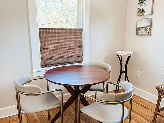 The unit includes a full kitchen, bathroom with shower, central AC, new windows, lighting fixtures and refinished oak floors. One parking spot is included with additional street parking available.