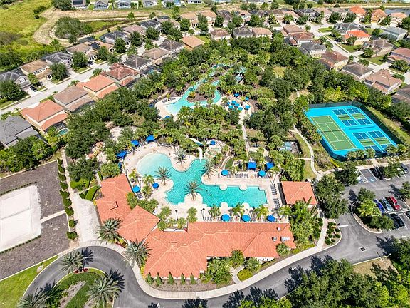 Whether you’re looking for a full-time residence, luxury vacation home, or income-producing short or long term rental investment, this property is ideally located. This 7-bedroom, 5.5-bath pool home is located in the exclusive, guard-gated community of Solterra Resort. What sets this home apart is its premium lot with no rear neighbors, offering exceptional privacy. Add side shades to the screened lanai and it can feel like your own private island! The modern, high-end interior design features sleek, neutral furnishings accented with pops of yellow and blue, creating an elegant and sophisticated atmosphere that truly wows...making this home the one to choose! With combined HOA and CDD fees averaging only about $625 per month, owners receive outstanding value. Mowing, fertilizing, exterior pest control, landscaping and irrigation system maintenance, cable, internet, and valet trash pickup are all included. Purchased separately, these services could easily cost $300+ per month. Add in Solterra’s luxury amenities and picturesque setting and it’s clear why this fee is so competitive compared to other resort communities charging $700+ monthly. Solterra’s world-class amenities include a resort-style pool, lazy river, water slide, cabanas, splash zone, fitness center, tennis, pickleball, and volleyball courts, a clubhouse and the Café Sol poolside bar & grill. The home itself is equally impressive, offering a spacious open floor plan with abundant natural light, a gourmet kitchen with gas stove, granite countertops and stainless steel appliances, multiple living areas including two primary suites(one downstairs & one upstairs)with ensuite baths, 2 additional bedrooms with a Jack & Jill ensuite bath and a loft for an additional living area. The tile roof offers a potential lifespan of more than 50 years. The private heated pool and spa with an expansive patio and exterior bathroom create the perfect retreat on this superior lot with no rear neighbors—so no risk of awkward staring contests across the way! Currently operating as a short-term rental, existing bookings may convey if the buyer continues with the current management company. near Disney, Universal, shopping, dining, and major highways. Don’t forget to check out the Virtual Tour link for an immersive 3D experience…. where you can walk through the home, explore every angle, and zoom in or out to see all the details.