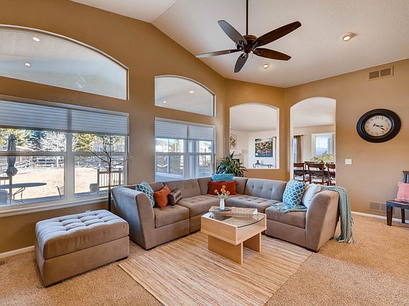 Gorgeous ranch in Roxborough Village w/dual split garages & lg backyard. This home has a unique layout w/loads of space, character & upgrades. Home welcomes you to a lg LR w/vaulted ceilings & view of the yard. Kitchen recently updated: white cabinets, slate copper backsplash & custom concrete counters, SS appliances & cherry wood floors. Lg eat-in kitchen area & attached family room w/corner fireplace provides a cozy feel. Head out of the main family area to the master suite. Bedroom has added retreat area w/fireplace, perfect for quiet nights. The master bath has neutral tones w/lg walk-in closet & a separate door to backyard patio. The main level is completed w/2 additional bedrooms & full bath. Open staircase to the basement continues the WOW factor. Oversized basement has been finished w/wet bar & space for a game table or pool table. Additional 3 bedrooms and spa-like bath plus bonus hidden storage behind the stairs. Hookups for W/D up & down!