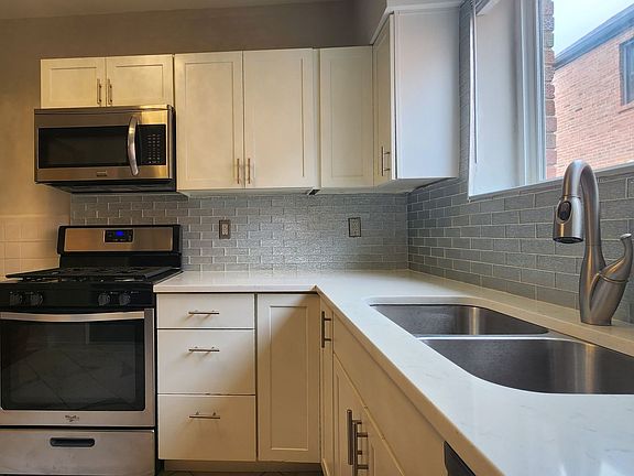 - Luxurious updated kitchen with quartz countertops and stainless steel appliances