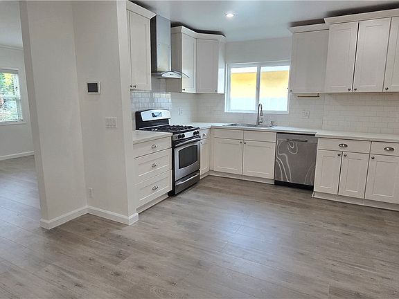 Two homes on one lot, each with its own address and its own electric and gas meter. Front house was completely remodeled in 2018 including a permitted addition of almost 500 sq ft. for a total of 1404 sq ft. It features 4 bedrooms, 3 beautifully remodeled full baths, a gorgeous kitchen with custom cabinets, quartz countertops & stainless steel appliances, LVP flooring, newer HVAC system and tankless water heater. The back unit was newly built in 2018 and includes 2 bedrooms, 1 bath and measures about 575 sq ft. It also has a beautiful open kitchen with quartz countertops and stainless steel appliances, a mini split HVAC system and a stacked laundry unit closet inside. The property features a long driveway with a drive-thru carport to a paved area that can fit several cars. Very low maintenance front and backyard since both have beautiful turf installed. Back unit is currently tenant occupied through Feb 2026.