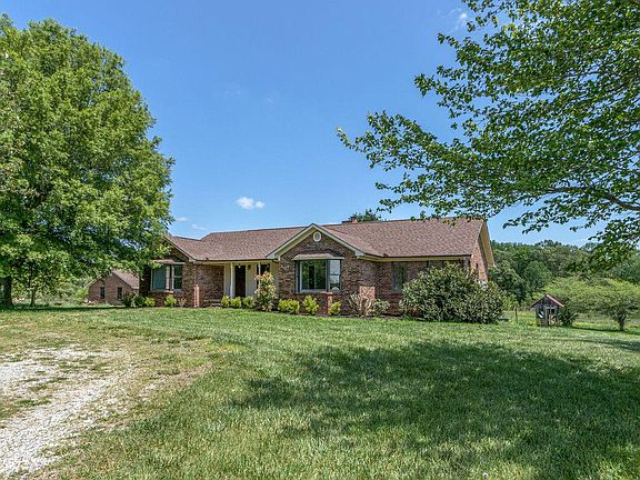 Charming 4 BR/3 bath brick home w/detached garage, barn & 5 acres! LR/DR combo w/pine walls, HW floor & wood-burning FP. Adorable kitchen w/peninsula bar seating, pantry & bfast nook. Master BR w/HUGE walk-in closet & HW floor. Master bath w/tile floor, jacuzzi tub, separate shower & linen closet. Large guest bedrooms w/HW & XL closets. Full basement w/garage, den, BR, walk-in closet, full bath & kitchenette. New HVAC. Roof approx. 3 yrs. Amazing deck & views! No city taxes! Convenient to I-24!