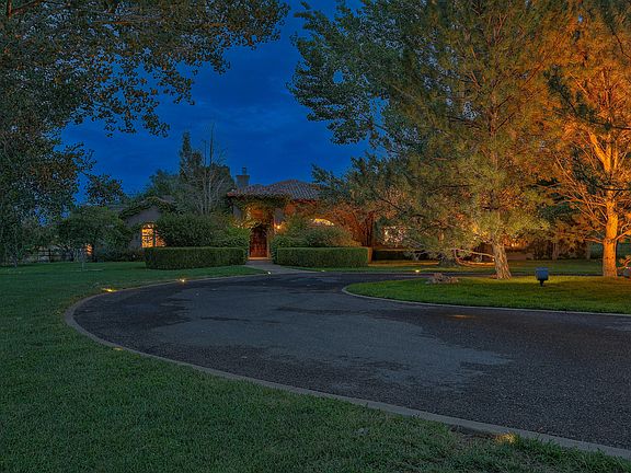 Exquisite North Valley Estate!Nestled on two lush green acres in the prestigious North Valley, this idyllic estate offers the perfect blend of elegance, privacy, and modern comfort. Built in 2006, the single-level residence spans 5,136 sq. ft. and showcases vintage hardwood floors, a spacious chef's kitchen with an expansive granite island, and multiple living spaces including formal living and dining rooms, plus a family/media room with tiered seating.The home offers four generously sized bedrooms, each with its own en suite bath, as well as a private executive office, gym, and flexible guest accommodations.