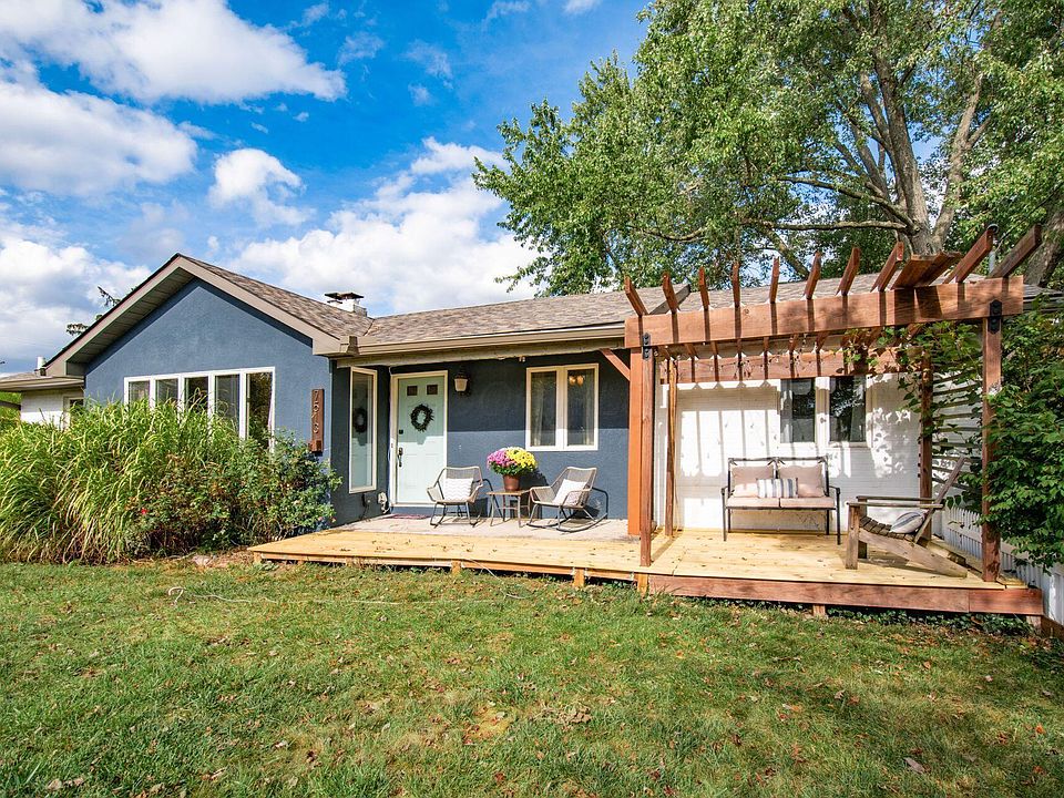 OPEN SAT 10/4 11:00-1:00! Welcome to your peaceful retreat, set on over a half-acre lot with a charming white picket fence in the front yard. This 4-bedroom, 3.5-bath home combines modern updates with timeless charm and a unique, flexible floor plan. The kitchen features stainless steel appliances—including a brand-new dishwasher—granite countertops, and tile flooring. A double-sided stone-surround fireplace connects the kitchen and main-floor family room, where a custom-built entertainment center with sliding barn doors and built-in shelving creates the perfect gathering spot.A rare find, this home features two main-floor owner's suites, both with ensuite bathrooms. One offers sliding glass doors that open directly to the back deck, while the other provides room for a private sitting area plus a bonus room that could serve as a nursery, office, or hobby space—ideal for multigenerational living or a mother-in-law suite. All bathrooms have been beautifully remodeled, adding to the home's fresh appeal.The walkout lower level expands your living space with a second family room, sliding glass doors leading to a cement patio, a versatile bonus room, and a counter with cabinetry for added storage and convenience. Outdoors, enjoy the expansive deck spanning the length of the back of the home, a pergola-covered front deck, and a picturesque backyard shaded by mature trees. The backyard shed is half storage and half sitting area—perfect for function, relaxation, and fun. Additional highlights include mostly hardwood flooring throughout, a brand-new roof(2025) and gutters (2025), and a washer/dryer that remain. Just minutes from Polaris, Uptown Westerville, and Hoover Reservoir, this home offers the feel of a country retreat with all the convenience of city living.