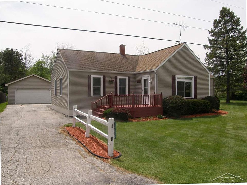 Four bedroom home in great condition on a big beautiful two acre lot with some woods in the back. New flooring throughout most of the home. Spacious 14 x 15 master bedroom. Includes all appliances. Cable, natural gas, and city water. Nice two car detached garage. Well insulated home. Hardwood floors beneath carpets. Home warranty included. Move in ready!