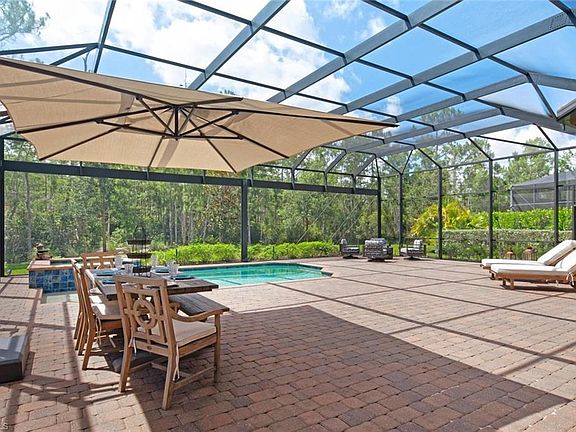 Stylish entertainer's dream home super sized backyard oasis offers complete privacy w/ mesmerizing preserve views & close to local attractions! Country Club lifestyle gated/golf course community 3,575 sq ft of luxurious living- 4 BR plus office/den, 3.5 BA & 3-car climate controlled garage perfect for car enthusiasts. Extended lanai boasts 50' wide screen, custom pool and spa. Custom wrought iron double front doors, lush lighted landscape, summer outdoor kitchen, porcelain wood tile throughout, granite countertops, stainless steel monogram appliances, breakfast bar, eat-in kitchen, walk in pantry, double ovens 1 connection, warming drawer, 2 dishwashers and upgraded cabinets. Hurricane impact doors and windows provide peace of mind. Additionally, this home includes a full-house water treatment system. flat screen TV's, invisible pet fence, California closets, designer lighting, and plantation shutters. Required amenities with purchase of residence include restaurant, tennis, social events, fitness center, and 36,000 sq. ft clubhouse. Golf membership is NOT mandatory for the P.B. Dye designed 18 hole course. Minutes to the best schools, beach, shops, restaurants, and airport.