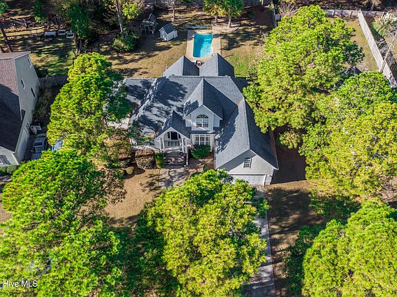 Welcome to your dream home! Nestled in highly sought-after Bayshore Estates, this stunning 5Bedroom/3Bath home is situated on a generous .61 acre lot. The property has a private, fully fenced backyard with a sparkling saltwater pool, ideal for relaxing & entertaining. The spacious two-story living room is filled with natural light and features a gas log fireplace-perfect for cool evenings. The open floor plan flows into the kitchen & dining area. The gourmet kitchen features stainless steel appliances, granite countertops, and plenty of cabinetry. The luxurious primary suite in located on the main level with trey ceilings and en suite bathroom, complete with dual vanities, soaking tub, & walk-in shower. There is also a guest bedroom, guest bathroom, & laundry room on the main level. Step outside to your private backyard retreat with decking to entertain guests, saltwater pool, perfect for summer BBQ's or unwinding. Upstairs there are three additional bedrooms/bonus room and a full bath, with plenty of closet space for storage. Enjoy access to the private community boat ramp for a small fee, ideal for exploring the beautiful waterways. Just minutes to shopping, restaurants, & Wrightsville Beach! Schedule your private tour!