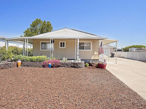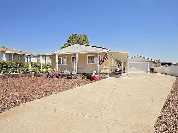 You'll never guess the age of this Golden West manufactured home among all the upgrades and updates. This is a home that you would be proud to call home. This home was build in 1993 and put on it's own foundation and a ramp for handicapped access.The master is on one end and the 2 guest rooms at the other end for privacy. The kitchen has had many updates and is the heart of the home and open to the dining area. The living room is spacious with vaulted ceilings and lots of windows for natural lighting. The main bath features a wooden barn door and a spa handicapped tub-shower. There is a detached garage with full bathroom. 2 large sheds for storage. The property was with solar panels and it totally off grid for power. The property is completely fenced, plenty of parking, covered patios and has mature landscaping with gorgeous plants and flowers.
