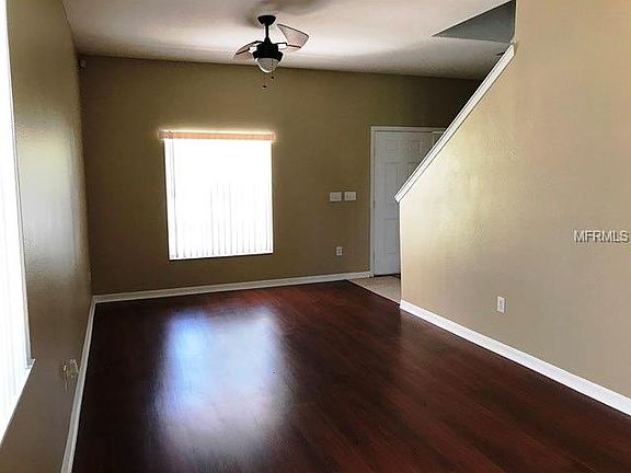 This majestic house is just waiting for you to make it a home. With 3 bedrooms upstairs plus an enclosed loft, 2 1/2 baths, living/dining room, family room and breakfast nook. All this has been freshly painted with new carpeting too. There is space for everything and everyone. Master suite has a huge walk in closet with an office/sitting room/nursery off of it. All secondary bedrooms are large. Stainless steel appliances in nice open kitchen would please any chef. Large backyard overlooking pond with covered lanai. Quiet neighborhood with a community pool. Easy commute to anywhere. Come see!
