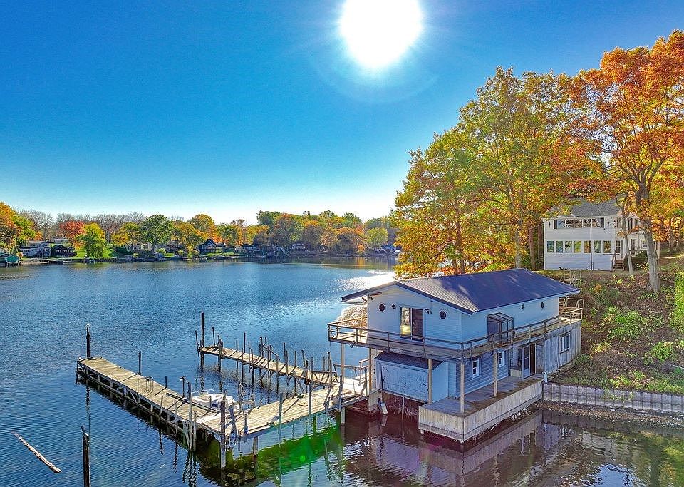 RARE OPPORTUNITY ABOUNDS WITH THIS ISLAND VACATION HOME FEATURING 203'OF WATER FRONTAGE ON GREAT SODUS BAY AT THE NORTHERN TIP OF LEROY ISLAND - THE ONLY ISLAND ON SODUS BAY ACCESSIBLE VIA BRIDGE! SPECTACULAR SUNSETS OVER THE BAY & LAKE ONTARIO CAN BE ENJOYED FROM SEVERAL AREAS OF THIS UNIQUE PROPERTY INCLUDING THE EXPANSIVE ENCLOSED WATERSIDE PORCH! PERMANENT DOCK! INCREDIBLE 2-STORY BOATHOUSE (1500+ SF) WITH HUGE ENTERTAINMENT AREA - OVER $54,000 SPENT ON DECKING & SUPPORTS. NEW CUSTOM WINDOWS FOR THE BAY SIDE OF HOME (BOTH UPPER & LOWER LEVEL)! 1ST LEVEL WINDOWS HAVE BEEN INSTALLED AND 2ND LEVEL WILL BE INSTALLED PRIOR TO CLOSING. ROOF ON HOME WAS A "TEAR OFF" WITH NEW OSB BOARD IN NOV 2024. NEW METAL ROOF ON BOATHOUSE NOV 2024. NOTE 4 BEDROOMS UPSTAIRS DO NOT HAVE CLOSETS BUT HAVE ROOM TO INSTALL THEM. THIS IS A ONE OF A KIND OPPORTUNITY AND SOLD IN "AS IS" CONDITION. FIRST TIME THIS RARE PROPERTY HAS BEEN FOR SALE IN 54 YEARS! DELAYED NEGOTIATION. ALL OFFERS DUE BY MONDAY, NOV 3RD AT 12:00 NOON. NO ESCALATION CLAUSES PER SELLER. PLEASE SUBMIT HIGHEST AND BEST OFFER.