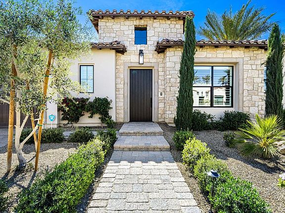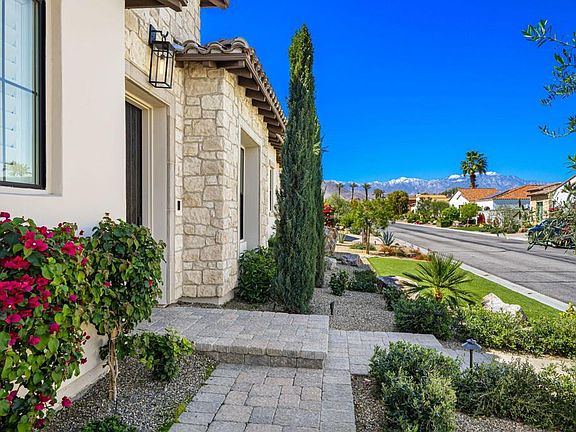 Sensational and exquisite home located in the newer community of The Province. Built in 2023, this home has recent extensive upgrades beyond what the builder added. Both interior and exterior upgrades make this home the best available in this gated community of Indian Wells. Step into the detailed and inviting foyer and be greeted with European oak floors throughout and a Schonbek Chandelier. This Italian-inspired contemporary oasis surrounds the pool and spa, visible from every room. The upgraded and enhanced gourmet kitchen with Dacor appliances, a waterfall quartz island, a beverage fridge, and numerous other upgrades. High ceilings throughout and a living room fireplace surrounded by white leather wallpaper. The separate dining area with a mountain view, John Richard chandelier and sconce, cork wallpaper, and lots of windows. Upgraded primary suite with large custom fitted walk-in wardrobe closet. Two separate bedroom suites are located on the other side of the home. Attached casita can be guest suite/office. Well-equipped attached garage with storage cabinets, wireless garage door opener, workstation, and Kinetico water filter and softener system. Other enhancements: 26 fully owned solar panels ensuring efficiently, upgraded Sonos system, motorized shades though out(blackout and light blocking), BBQ, fire pit, pavers surrounding the home, motorized patio screens and shades, rewired and elevated AC units, outdoor security camera system.