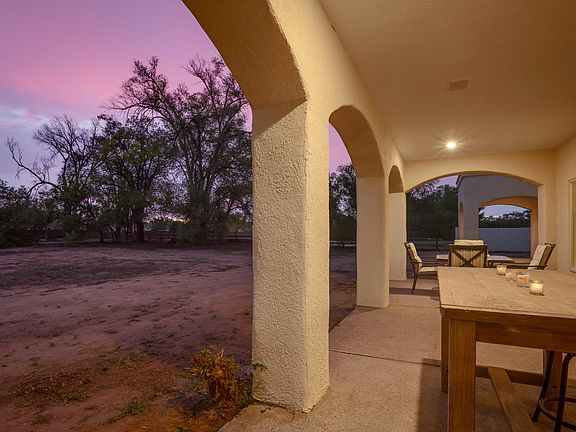 Nestled in the coveted Rio Grande Estates of the North Valley, this beautiful home offers tall ceilings, wide hallways, and expansive living areas including 2 living and dining rooms. The open kitchen features granite countertops, stainless appliances, and elegant cabinetry. With 3 bedrooms plus an office (optional 4th bedroom), the layout offers flexibility for any lifestyle. The primary bedroom is generous and offers 2 walk in closets and a luxurious bath. Recent updates include fresh interior paint, elastomeric stucco, and owned solar panels. As one of the largest lots in the neighborhood, the back and front yards are ready for your vision with endless possibilities. Enjoy nearby access to Bachechi Open Space and Bosque trails for walking, biking, and exploring nature.
