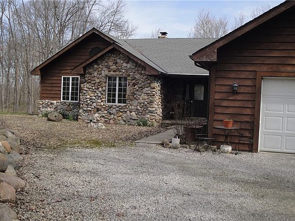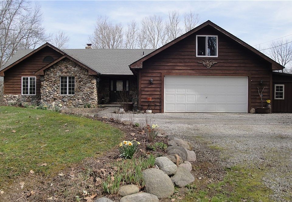 This beautiful home was built with Cedar siding & real stones on house & fireplace. Over 4 acres of trees,creek and secluded Countryside. Lots of flowers & trees .Also chicken coop & chickens if buyer would want. Convenient to Lodi & Medina. Home has 8 inch walls .9ft ceiling. Over garage is bonus room with steps from the garage up. Elec. average $260.
