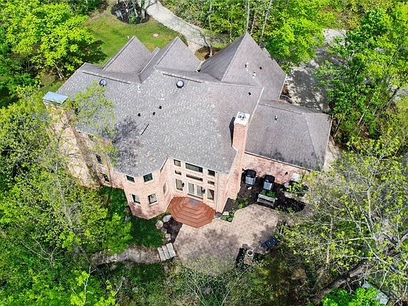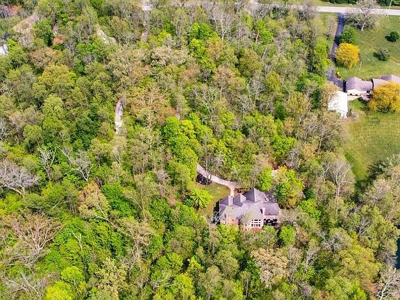 Escape from the hustle and bustle to your own private retreat, just minutes from restaurants, shopping, and I-70 & I-75. This beautiful custom built 5200 sq. ft. home sits on 6.36 heavily wooded acres with 2 winding streams. This home was built with amazing attention to detail and features 4-5 bedrooms, 4 1/2 baths, 4 fireplaces, custom brick work, custom woodwork, and a 2 car garage. As you enter the home you are greeted by a grand entry way that flows into the dinning room and hall that leads to the family room, kitchen w/ custom hickory cabinets featuring granite counter tops, large island, Kitchen Aid appliances, Samsung induction stove top, & a dumb waiter. The kitchen is open to the breakfast room which is surrounded by windows and the great room has an 18 ft. ceiling with expansive windows so you can enjoy the tranquil wooded views. Also on the main level is an in-law suite with private entry, laundry room, and a room w/ pocket doors offering flexibility for guests, office, bedroom, or hobbies. Upstairs you will find an office, bathroom, loft area that is open to the great room which offers great views of the outdoors, and the large owners' suite w/ walk in closet, master bath featuring 2 vanities, a large jetted tub, shower & water closet. The walk out basement features a large rec room with stone fireplace, kitchenette, 2 bedrooms, bathroom, and utility room with storage space. Updates include : Furnace, central air, heat pumps, water heater, and appliances. Home Warranty available