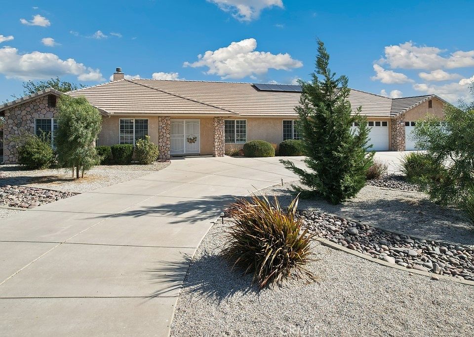 Welcome to Quail Summit, one of the rare gated communities in Oak Hills, where luxury meets serenity! This stunning single -story 5-bedroom, 3-bathroom modern home sits on over 2 acres of flat land, offering both breathtaking mountain views and an array of premium amenities. Step outside to your private backyard paradise, complete with a sparkling solar heated swimming pool & spa, —perfect for endless summer fun. The sprawling landscaped yard is fully fenced for privacy, featuring fruit trees and plenty of space to entertain. A circular driveway ensures stylish arrivals and easy access, leading to an attached four-car garage with a 240V outlet for a Type-2 EV charger.