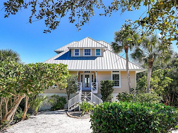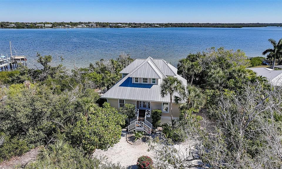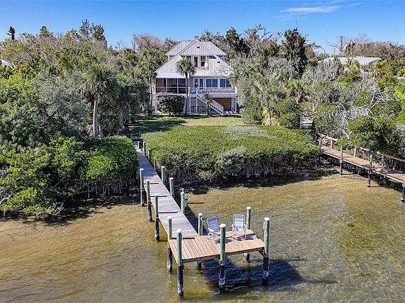 An exceptional offering on Manasota Key, this refined waterfront residence delivers a lifestyle defined by privacy, elegance and a setting that is “one with nature”. Arriving via a 400 ft winding driveway through century oaks and countless palm trees on Manasota Key is a private waterfront sanctuary. The property captures the nature, beauty and serenity of old world Florida. The home is set on nearly one acre and bordered by an unbuildable neighboring parcel. Situated on one of the widest points of Lemon Bay, the home enjoys riparian rights extending over 1,200 feet into the bay that forever protects your water view. There is a private L-shaped boat dock - ideal for boating enthusiasts seeking bay and gulf access with no fixed bridges. Directly across the street is a 6ft deeded beach access easement. The home is far from public access in both directions so your beach is about as private as they come. The residence was renovated top to bottom in 2023-2024 and designed with both elegance and high quality finishes in mind. The first living level sits at 13.4 feet, with Miami-Dade IMPACT-rated low-E, argon filled windows certified to 200+ mph and an all hip metal roof, providing confidence, serenity and style. Inside, soaring ceilings and abundant natural light create an immediate sense of openness and sophistication. Coastal finishes, luxury vinyl flooring, and a wood-burning fireplace lend warmth and character, while the layout flows seamlessly for both relaxed living and elevated entertaining. The owner’s suite occupies all of the top floor and is a private retreat unto itself, featuring dedicated office space, generous closets and a private balcony that captures breathtaking views across Lemon Bay—perfect for sunrise reflections, daytime sun bathing and evening star gazing. Additional amenities include: • Covered parking for 4 cars • Generous under-home storage and workshop • Central vacuum system • Alarm and exterior video security system. This is a home that offers not just beauty, but balance—where quiet mornings on the bay, afternoons on a private beach and evenings beneath expansive skies become part of everyday life. Located close to Manasota Key’s celebrated dining, boating, and natural beauty, yet worlds away from the ordinary. A rare coastal sanctuary, this property combines architectural presence and serene beach living—an opportunity that stands apart on Manasota Key.